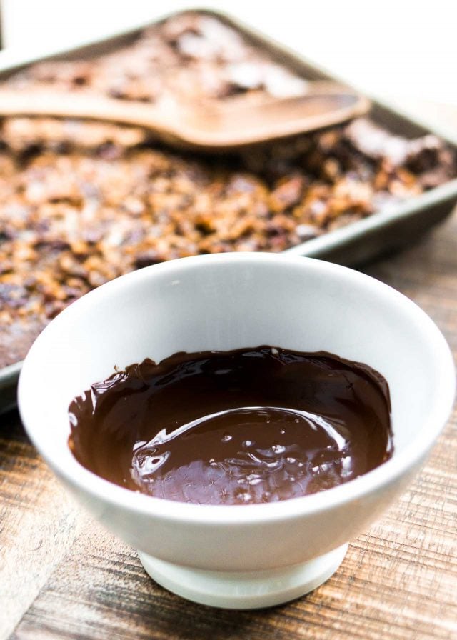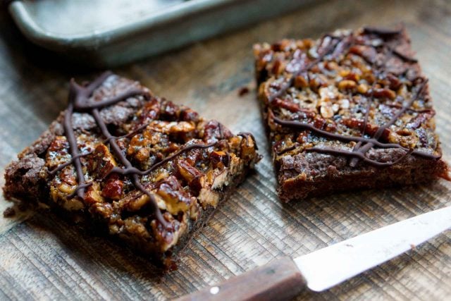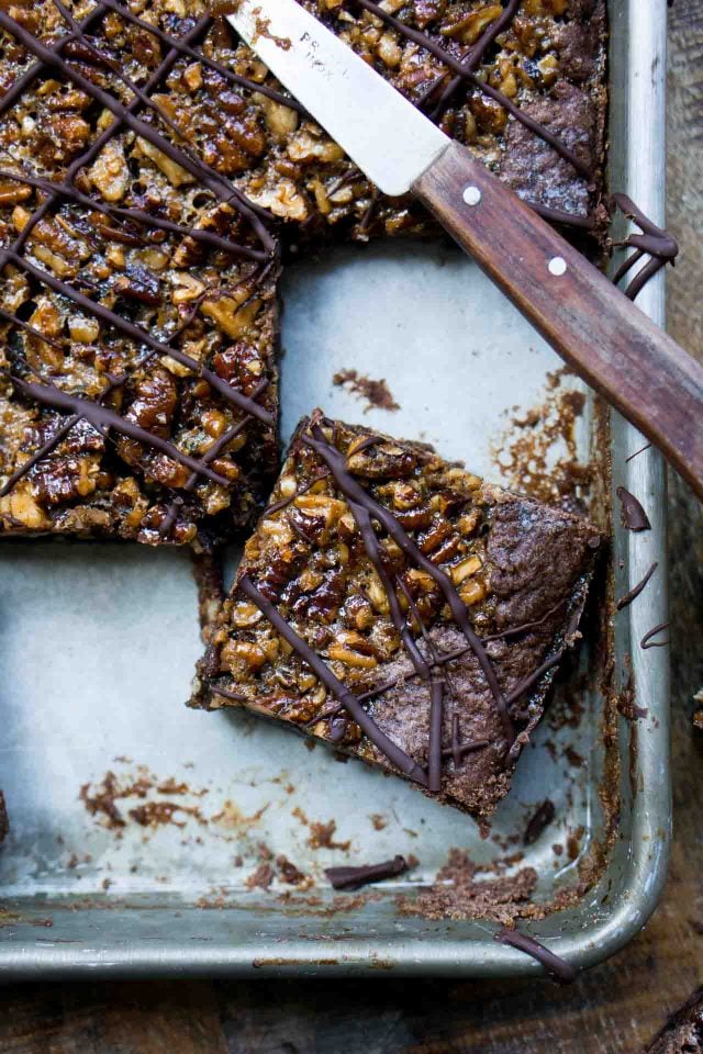 - Preheat the oven to 350ยบF (180ยบC). If you have a baking steel or stone, put it on the middle rack of the oven. Otherwise invert a rimmed baking sheet, if you have one, on the rack to even out the heat. If you don't have any of those, it's okay to bake the pie without it. Melt the 6 tablespoons of butter in a saucepan over medium heat until it starts to foam. Add the brown sugar, corn syrup (or another liquid sweetener), and maple syrup and stir until smooth. Remove from heat and let cool until tepid, about 5 minutes.