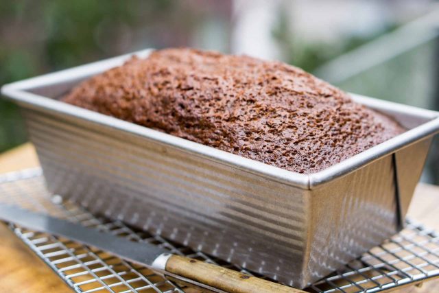 - Preheat the oven to 350ยบF (180ยบC). Spray a 9 x 5-inch (23 x 13cm) loaf pan with nonstick spray, or butter, then line the bottom with a rectangle of parchment paper. Spray or butter the parchment paper. (You can also bake it in a bundt pan. See headnote.)
