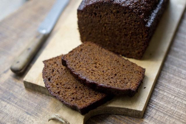 The cake bakes up beautifully into a big, dark, moist, generous cake. That said, there was extra batter since I chose to bake mine in a 9-inch (23cm) loaf pan. So if you go to the same route, youโll have about a cup (250ml) of batter remaining, which you can bake off in a small cake pan, or in a few of the indentations of a muffin tin, which are nice to have to snack on as a bakerโs treat, or for breakfast.