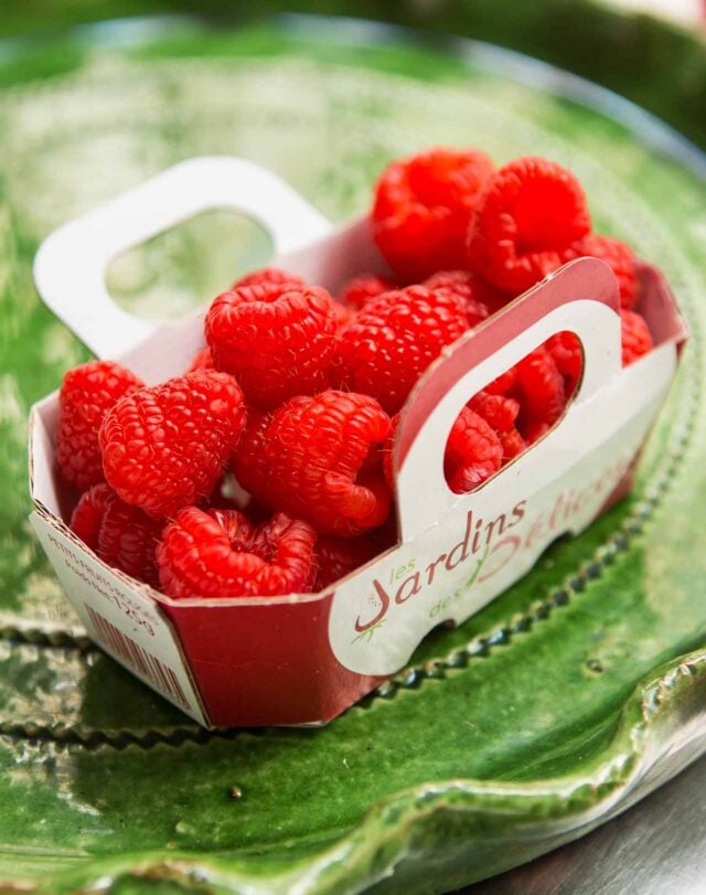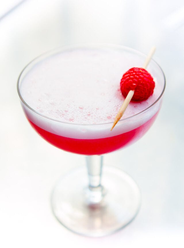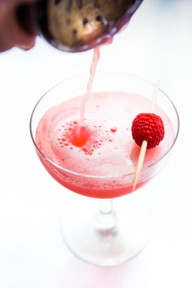 - Pour into a chilled coupe glass. Garnish with a skewered raspberry or two.