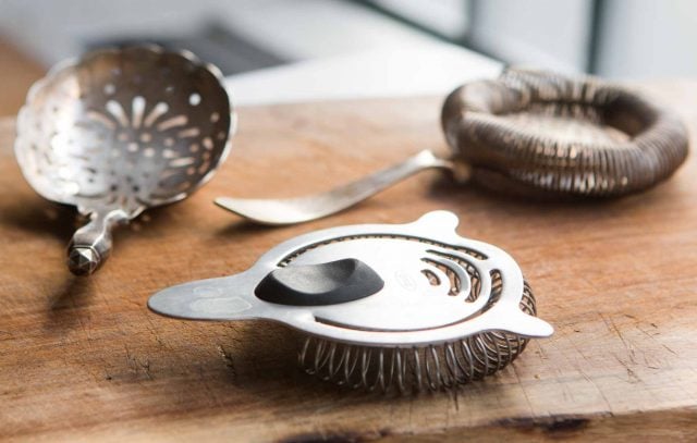 The Oxo strainer in the foreground is a very good all-purpose cocktail strainer and wonโt break the budget. I do like my vintage ones, shown behind it, too, although the one with the spring (back right) doesnโt fit into my narrower mixing glass. So if you go the vintage route, make sure itโll fit into your mixing glass.