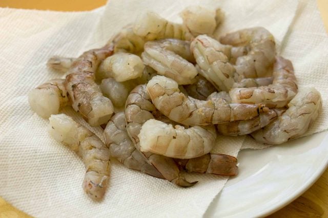 - Pat the shrimp gently with paper towels to absorb any excess moisture. Set aside.