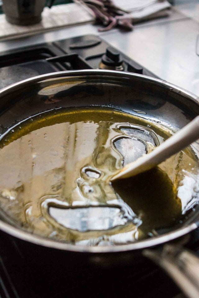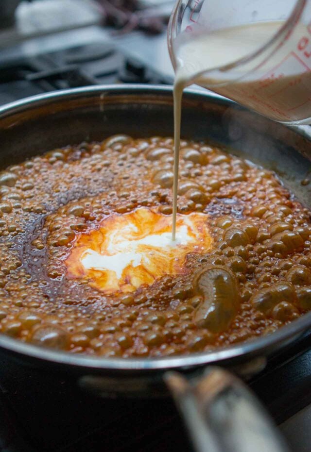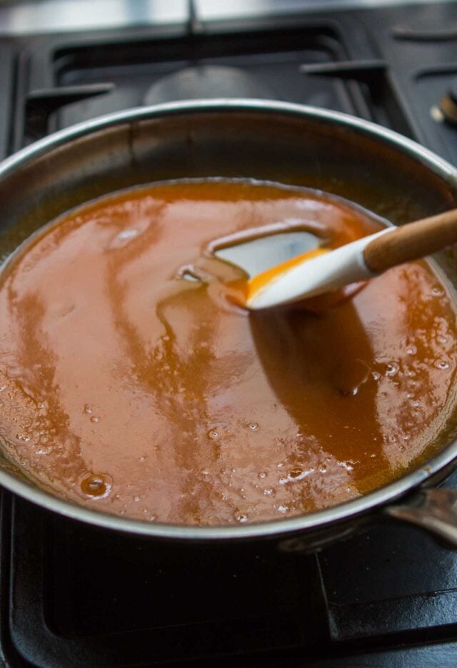 You want to get it to just the right color, aroma, and flavor where itโs cooked enough so itโs in the middle ground between being not sugary sweet, but not burned either. (I recently did a caramel video tutorial on Instagram that you might find interesting where I explain and demonstrate it in detail.)