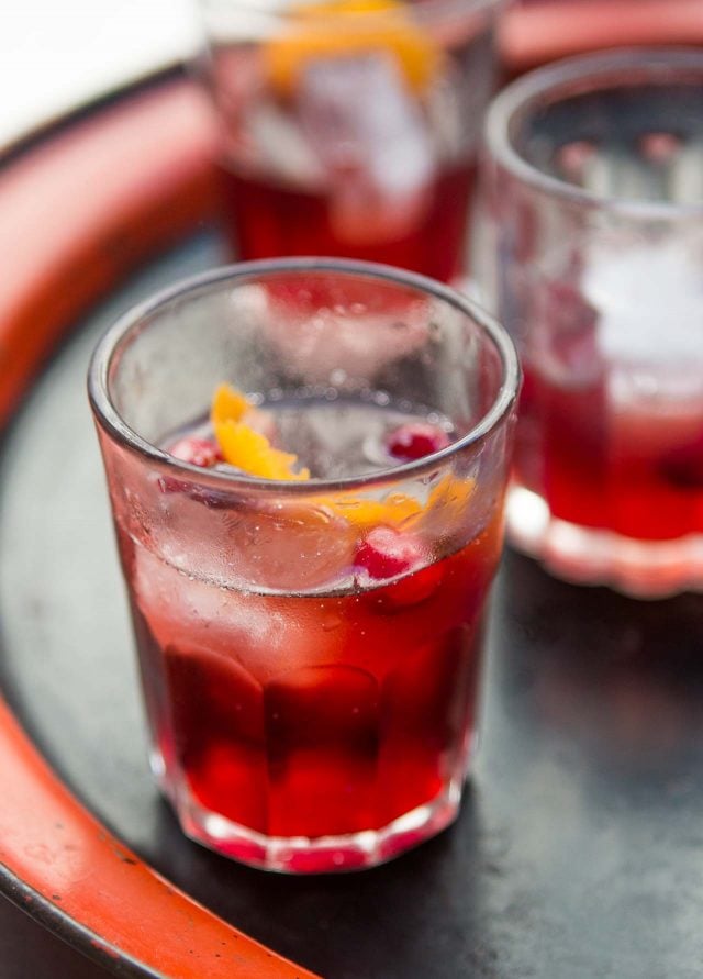 - orange twist and fresh cranberries, for garnish