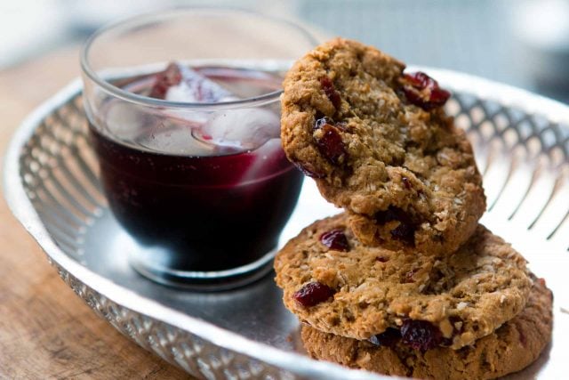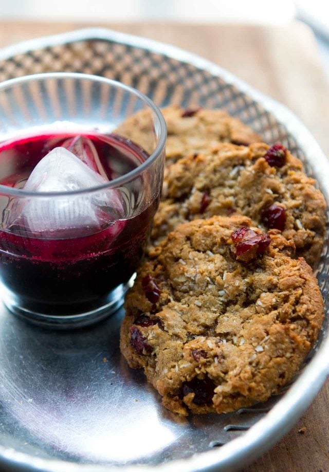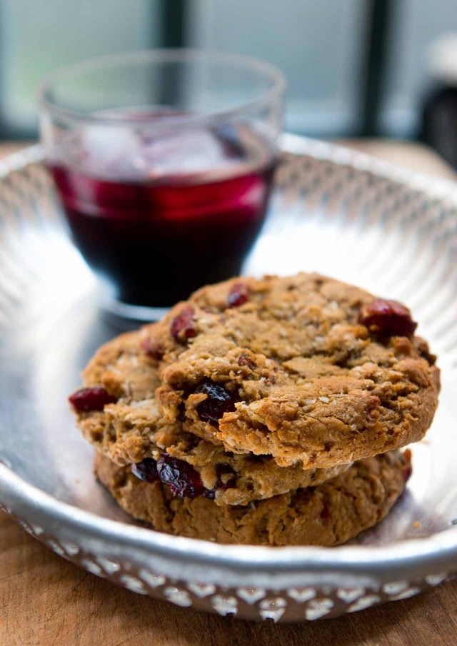 Until that day comes, I am going to be making these cookies weekly, or maybe more often. I am down to my last bag of dried cranberries (you can buy them in Paris, but they are usually sold in supermarkets small packets and are pricey little fellas) but have other dried fruit options, and have plenty of Golden syrup; when Marks & Spencer food opened in Paris, I was nearly bathing in Golden syrup, broccolini, muscovado sugar, crumpets, cottage cheese, and jalapeรฑos, which were no longer elusive, and, dare I say, abundant.