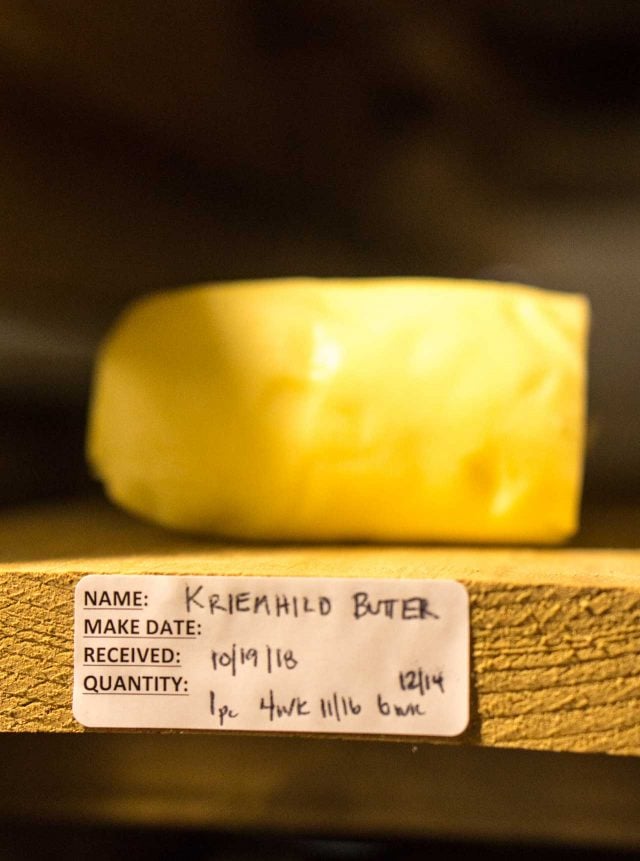 And thereโs a 4 week-aged butter that David Chang uses at Momofuku Koย (below). Ethan and the other person working in the cellarย told me it was rather funky. I bravely said that Iโve tasted a lot of butter, having visited several farms that make it, and never met a butter I didnโt like.