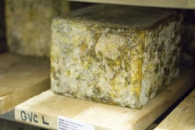 Each cheese is hand-brushed with stout made by Grimm ales, also in Brooklyn.