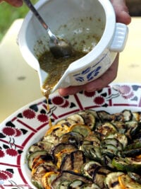 Elizabethย showed me that slowing down the cooking, and basting with the mustardy sauce was the way to get it well-seasoned without the usual blitz-charring that I do. Being a renegade, I had suggested grilling some broccoli raab or broccolini to go alongside because I try to eat as many stewing greens as possible when Iโm in the states (after tasting this,ย Romain is beside himself because we donโt get this kind of broccoli raab, or broccolini, in Paris), which was something she had never done โ proving that even the experts are open to learning something.