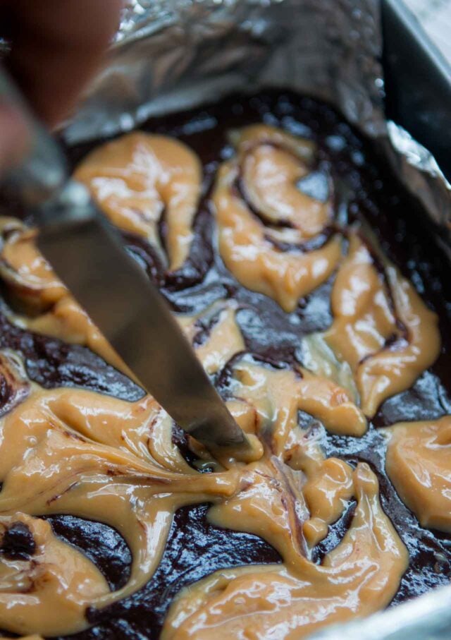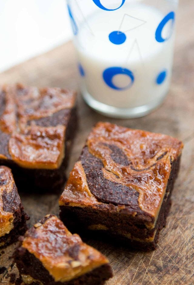 One thing thatโ€™s great about a blog is that you can update recipes as you make them over the years, which Iโ€™m doing with this one. I changed this one by shortening the baking time, so the brownies are denser, and although I tell you not to overswirl the dulce de leche, itโ€™s so much fun that sometimes I canโ€™t stop myself from giving it a few more goes with the knife. If you have more willpower than I do, youโ€™ll get bigger pockets of dulce de leche if you swirl it as little as possible in step #4 before adding the second layer of brownie batter. Or if you want even bigger pockets of dulce de leche, donโ€™t swirl it at all.