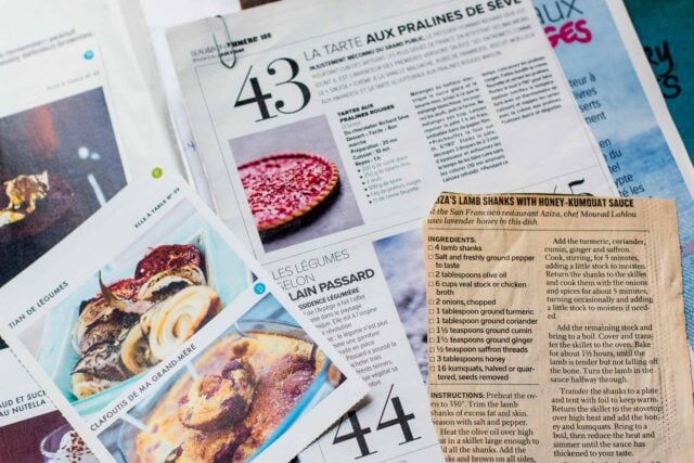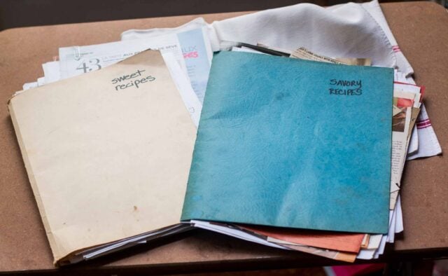 Iโm still a bit stuck in the past. And Iโm also stuck with two folders that Iโve had for nearly twenty years, which traveled across the Atlantic with me, from the days of yore. Theyโre recipes that I clipped from magazines while I was culling them and in the old days, we just keep them in files.