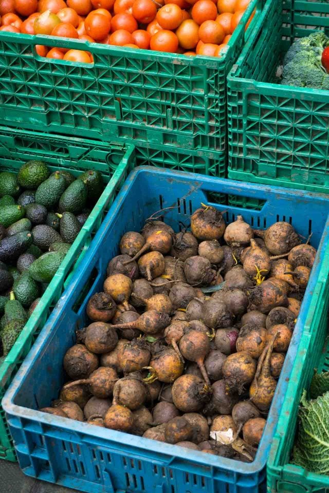 The produce at the market in April was heavy on the potatoes and root vegetables, which is to be expected, considering the climate and weather.