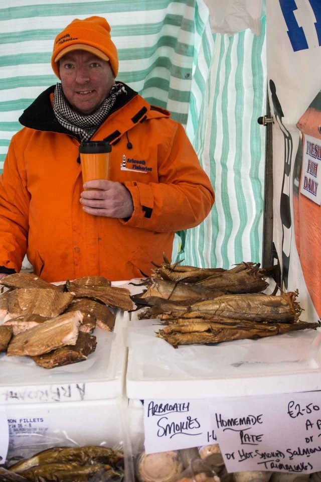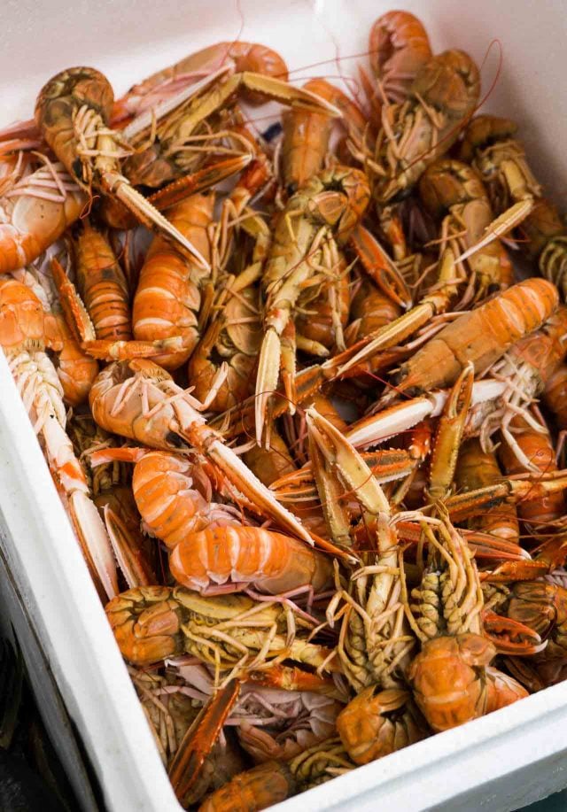 What the Edinburgh Farmerโs Market really specializes in is seafood and meat, smoked and fresh. Very fresh, as in, these langoustines were still crawling.