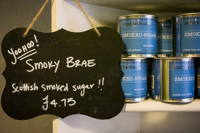 One curiosity on their shelves in the shortbread shop (and when I say โshop,โ itโs a single counter with a kitchen, an oven, and a couple of bakers behind it), were tins of smoked sugar. On one hand, I didnโt know what Iโd do with it. But on the other hand, how could I not get it?