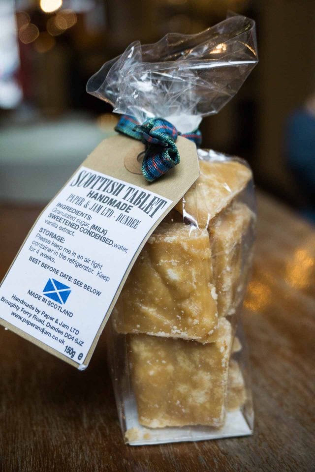 After the bakery we met up with Nikki Welch, who co-authored The Pocket Guide to Whisky, a handy, easy-to-reference guide to the world of Scotch whisky. (Like in Canada, whisky in Scotland is spelled without an โe,โ which is driving my spell-check bonkers.) In her tour, we focused on pairing Scotch whisky with local and Scottish specialties. She arrived armed with six bottles of Scotch, which she valiantly toted around town with us.