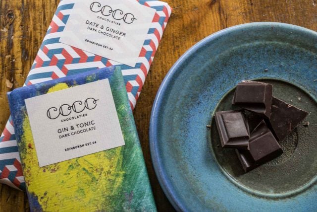 Coco blends Scottish flavors into their bars of dark and milk chocolate.
