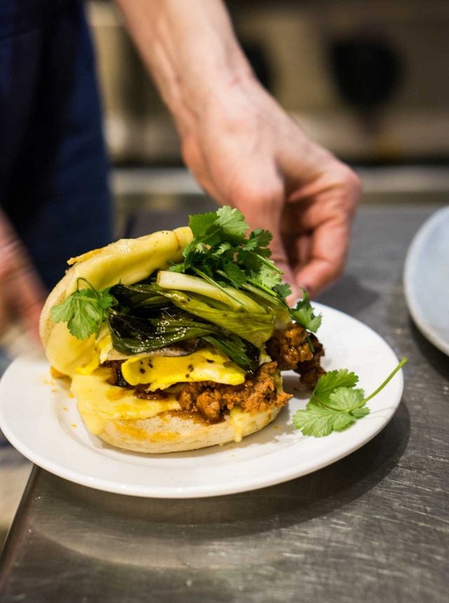 Mailea is definitely the master of the pickle and I swear, I could eat pickles at every single meal – especially hers – and be happy. Because it was still breakfast time, the menu was focusing on egg-based dishes, as well as a number of tartines. The Scrambled egg and Mexican chorizo sandwich, above (where’d she get Mexican chorizo?!?) had melted Gouda cheese and fermented chile sauce.