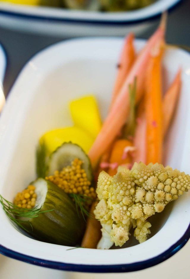But I love me some vegetables, any and all kinds, especially when they’re pickled. Another thing that Matthias told me he loved about Los Angeles was the interest in fermentation. While the French have their own much-cherished pickles, les cornichons, it’s lovely when someone takes fresh, local produce and lightly pickles it, not enough to overwhelm, but to compliment the flavors of the vegetables.