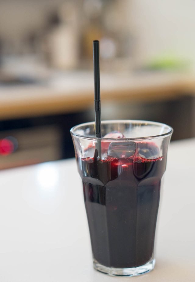 But that’s eau under the bridge, and I’m happy that she’s happy. (Grrrr….okay, I’m not over it.) I’m still waiting for my neighborhood to blossom, which is happening at a more, uh, relaxed pace. So I have to make the short trek to Echo Deli, where I started out with a fleur d’hibiscus-citron vert (hibiscus and lime) cooler while I waited for my friend Hélène to join me.