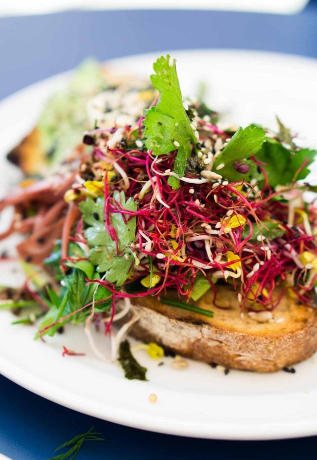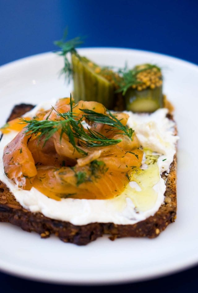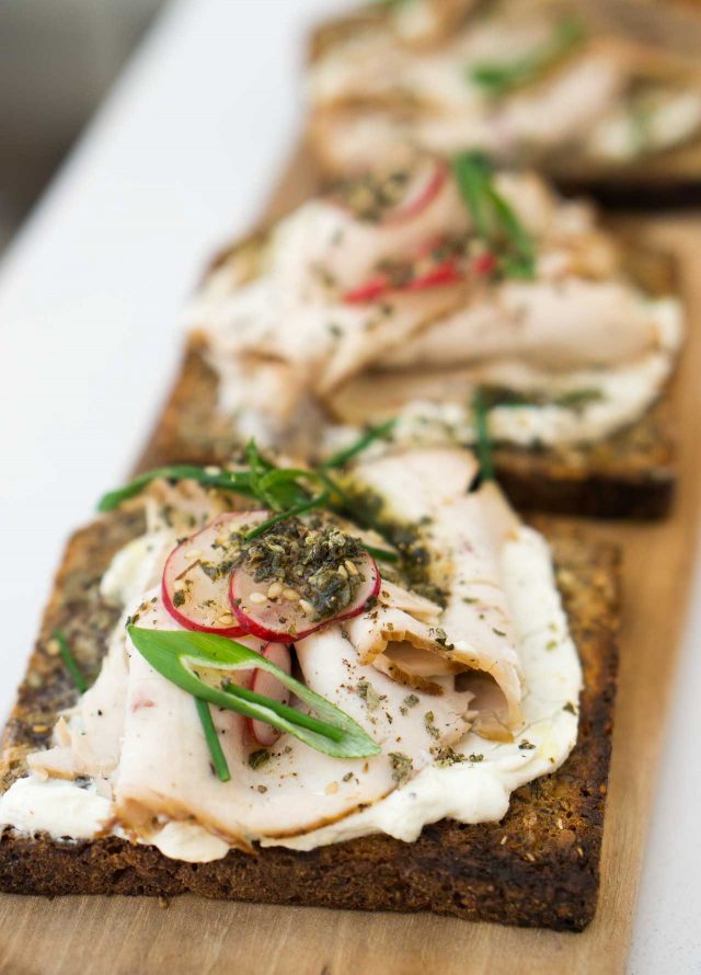 But there’s no shortage of great bread in Paris and she’s using it to make a variety of tartines, which range from soft egg, capers, aïoli, and dill (above), to turkey, labne, and za’atar (below).