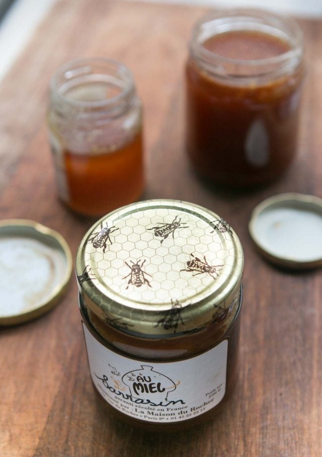 I discovered this shop when there was an explosion under my friend Denise Acaboโs chocolate shop and she had to close for a couple of years, before rebuilding it. One evening she decided toย hold court here and phoned me to come visit. Although there are a lot of honey shops in Paris, this one is the best Iโve been to. Theย owners, Sylvette and Alain, are passionate about honey, and have varieties that are hard to get, and stockย a few Iโd never heard of. All the honeys in the shop areย cultivated in France.
