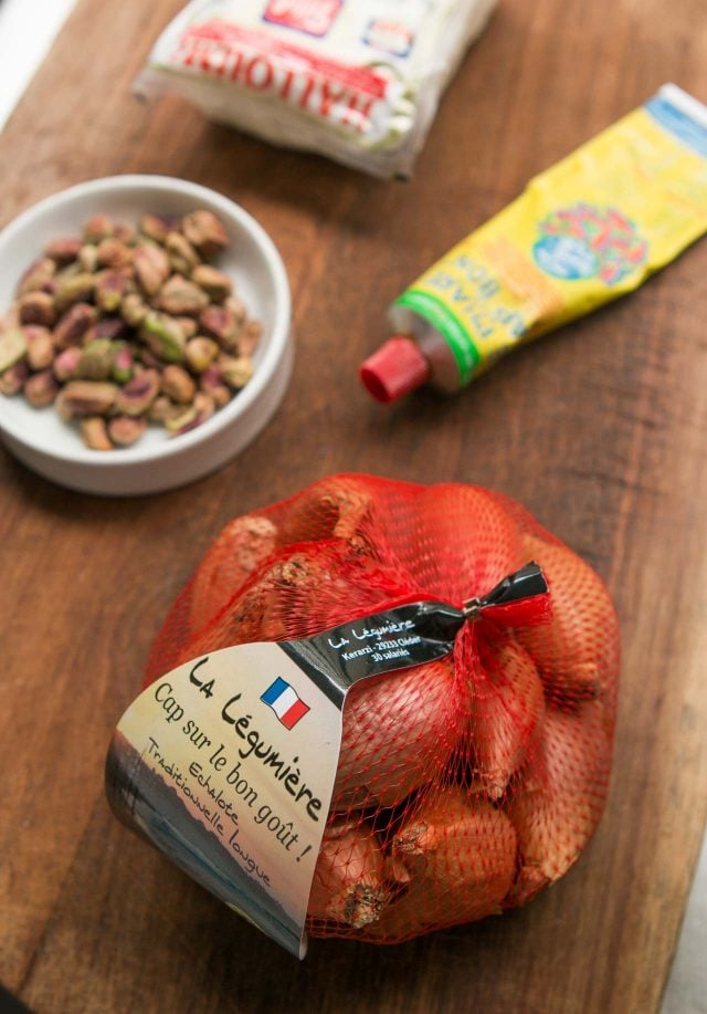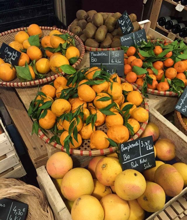 Outside theyโve got an edited selectionย of fresh fruits and vegetables. Recently I spotted some elusive bergamots (the true ones, which are different than the sweet lemons sold as bergamots in France). Also outside, you might find fresh turmeric and small knobs of organic ginger, as well as French shallots longuesย (the ones I prefer),ย and oignons rosรฉs (pink onions) from Roscoff, in Brittany.