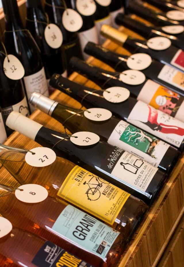 There are little snacks to go with the wine, and if you decide you want a bottle to drink on the spot, you can pull one off the shelf and pay a small droit de bouchon (corkage) to enjoy it there.