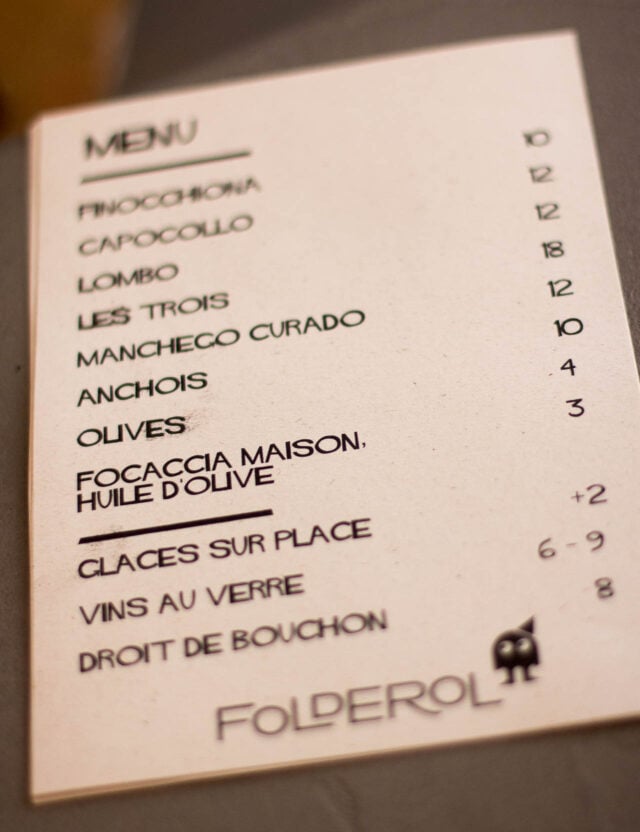 Like most restaurants in Paris, the handwritten menu of ice cream and sorbet flavors at Folderol changes daily, depending on the season, and the whims of Jessica and Robert. I often run into Robert at the local market and we exchange tips on who, and which stand, has what. Heโs so discerning that several vendors let him go behind the stand and pick out his own produce. Iโm not there yet, but they trust his judgment, and so do I.