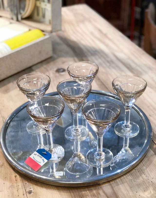 In addition to a twice-annual brocante, thereโs a weekly flea market on Sunday mornings in front of the St. Michel church in Bordeaux, which conveniently is a tram stop. We got there around 9 am and things were just getting going. I didnโt find all that much, until the third or fourth (or fifth and sixth?) time I did the rounds. Then I spotted a few lovely vintages plates, a pair of delicately etched apรฉritif glasses, a starched stack of crisp linen napkins (for โฌ5), and a 1960โs glass pitcher that I plan to use for Pimmโs Cups this summer.