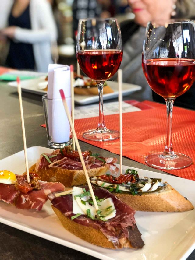 We ended up at the tapas bar drinking glasses of rosรฉ and having a few bites. I could have done without the bread, and just had the Spanish ham, which is so good you wonder why you donโt live closer (or in) Spain.