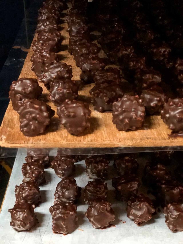 Thierry and I kept in touch over the years and I am particularly fond of his Rochers (above), meant to resemble rocks, and filled with housemade praline and toasted almonds, which he let me taste just off the cooling line. Longevity has its rewards.
