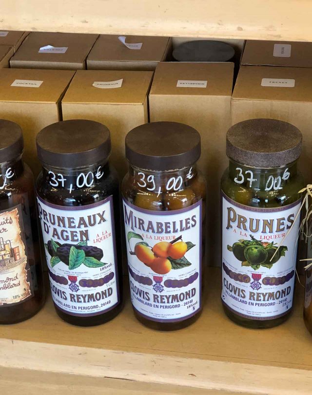 At the other end of the square is Badie. One of their shops has an extraordinary selection of Champagnes. (Jean-Pierre Moullรฉ, who was the executive chef at Chez Panisse when I worked there, once said to me, with a rather dream-like look in his eyes, โDaveed, I love that store.โ) Their other store specializes in spirits, where you can get bottles of things, like Dolin white vermouth and fruits preserved in the Pรฉrigord (above), including local prunes and French plums.