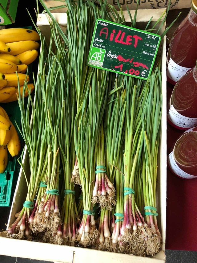 But there were other curiosities as well, things one doesnโt find too often elsewhere, including Cebettes (green onions) and Aillet (shown at the top of the post), which have a garlicky flavor, and can be used in omelets. And even though egg salad isnโt very French (like most of you probably though la margarine wasnโt either), Iโll bet itโd be really good chopped and added to egg salad. The aillets, not the margarine, that is.