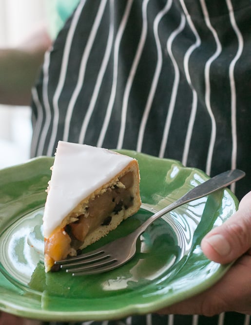 When we were eating the apple pie at his dining table, even though I keep trying to become French (and getting thwarted at every turn..) I guess Iโ€™ll always be trรจs amรฉricain, and couldnโ€™t help tinkering with tradition and thought that the glaze would be nice with a shot of calvados in it. So if you want to replace a small amount of the water, perhaps up to half of it, with liqueur (such as calvados, Cognac, or Armagnac), I think itโ€™d give the cake a little nod in another direction, if youโ€™re so inclined.