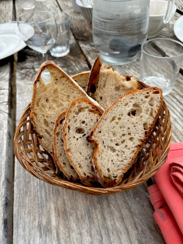 One of the things that I see when dining with visitors to France is that right after they pluck a piece of bread out of the bread basket that is invariably set on the table in cafรฉs and restaurants, they start looking around โ a little nervously โ where to put their bread down. While the conversation is going, I sense a bit of multitasking โ their eyes nervously scanning the table, darting back and forth, looking for something โ a plate, a board, an extra napkinโฆanything to put their bread on.