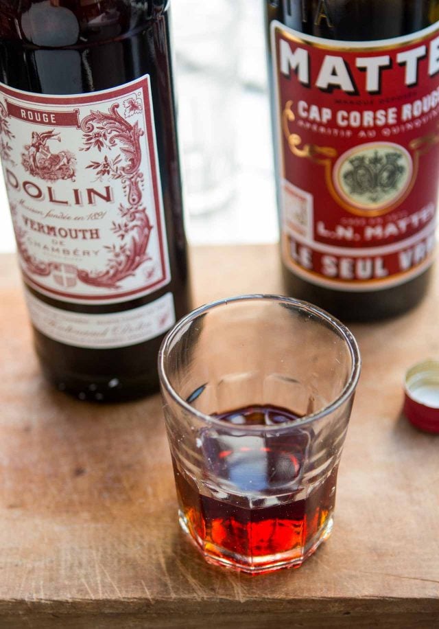 As for sweet vermouth, to keep it French, Dolin is a well-known vermouth from Chambรฉry, which was once part of Italy and isnโt far from Torino, where the founder learned to make vermouth. (You can read a story in my book about visiting the Dolin distillery in the French alps on pages 182-182 of the book.) To shake things up a little, sweet vermouth can be replaced by another apรฉritif rouge like Byrrh or Cap Corse, two quinine-based French aromatized apรฉritifs that are lovely served on their own, over ice with a twist. So if you get a bottle, the rest will be put to good use.