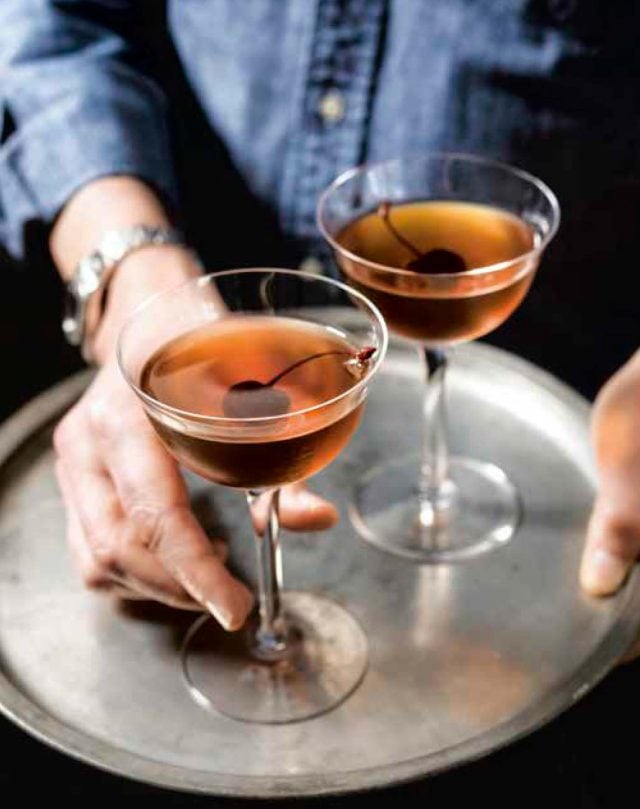 I tend to like simple cocktails and am a big fan of Manhattans. You can keep all those drinks with seventeen ingredients that might include a 1/4 barspoon of black sesame tincture, or rinsing the glass with distilled linden flower water โ actually, I donโt mind those drinks, but I find theyโre more appropriate to be served at a bar than made at home. Iโm in favor of drinks anyone can make with a minimum of fuss and a minimum of ingredients.