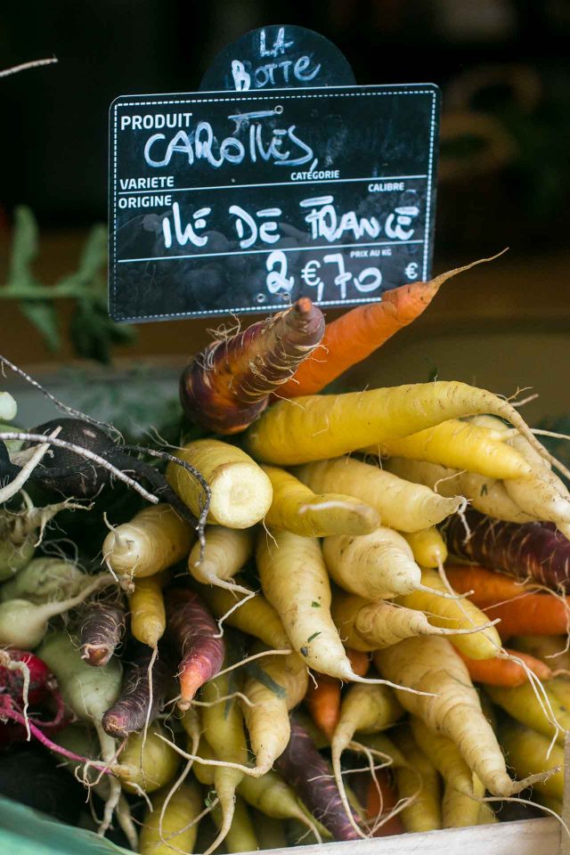 These are carrots raised in sand. Iโve heard that theyโre raised in sandย so they get better drainage, and become sweeter. Iโve also heard because of that, they donโt have a tough core. Iโve also read that their primary fertilizer is seaweed. Whatever the case, I do buy them, although they require a good scrubbing first. We use them to make grated carrot salad, a classic French salad thatโs simple enoughย to put together in a few minutes, and is a dish that everyone in France enjoys.