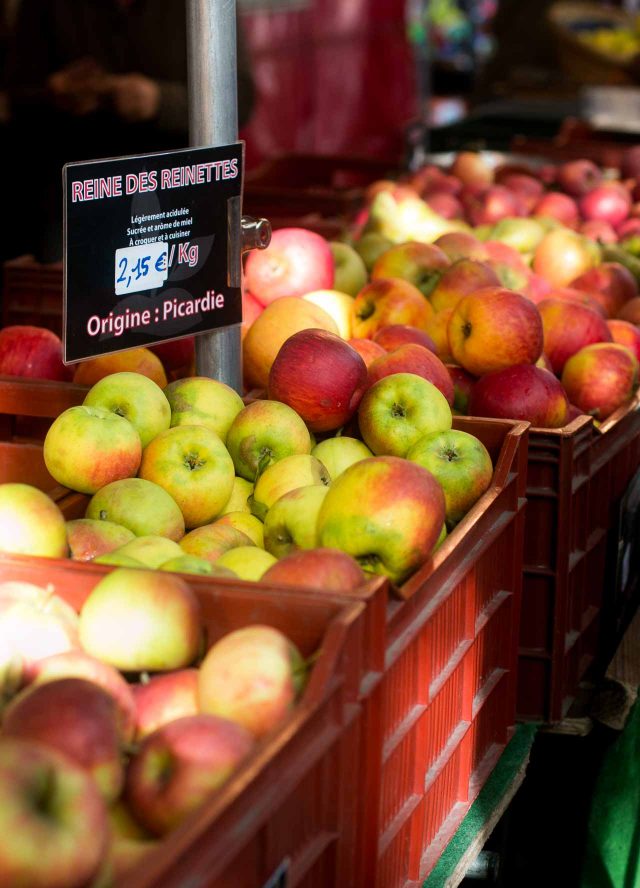 Although not everything is local at the markets in Paris, the apples I buy donโt come from all that far away. My favorite French apples are Boskoop, which have a tart flavor, with juicy flesh, and lots of crunch.