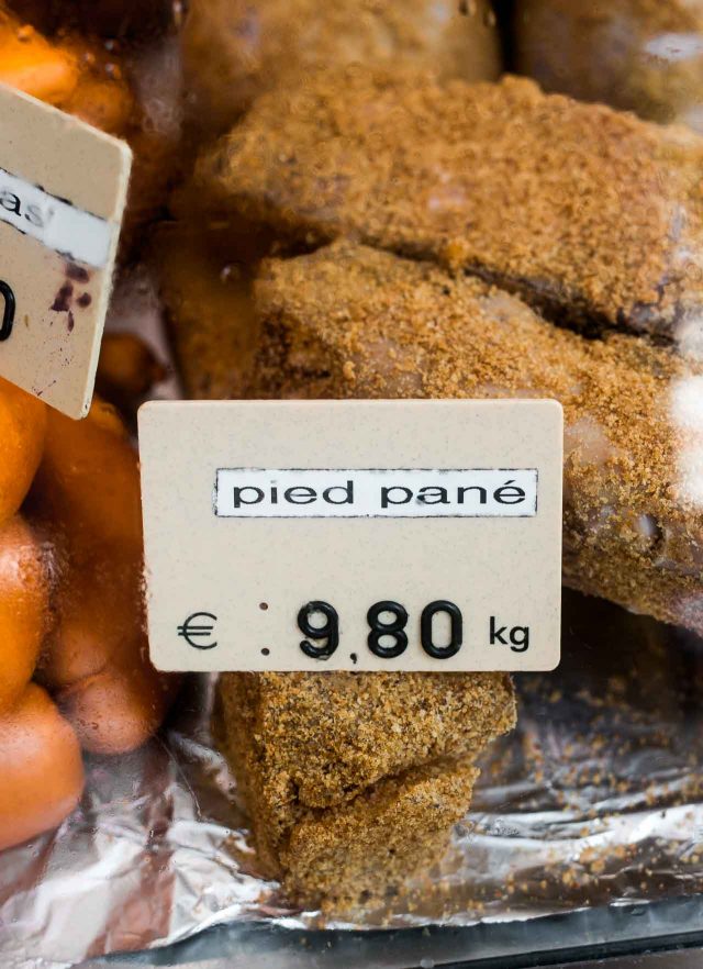 One thing I havenโt tackled is a pied panรฉ, or breaded pigs foot. You take them home and bake them in the oven โ the French version of โtake outโ โ then extract the hard-to-extract meat, nestled in between the bones, with the patience of a surgeon.