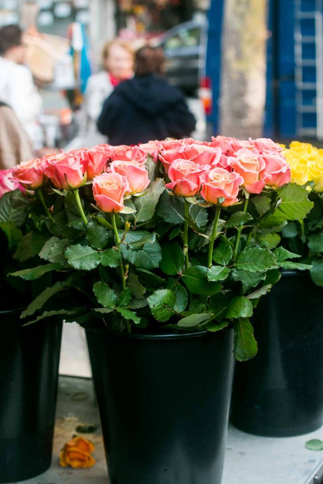 Potirons are showing up now, too, and the French squash are so big that theyโre sold in wedges. I bought the slice on top, and brought it home to make soupe. I didnโt have any room in my bag for flowers, which didnโt please a certain Frenchman when I got home, but maybe if I can convince him to let me get a pair of espadrilles, heโll get a bunch of roses next time, as thanks for his approval.