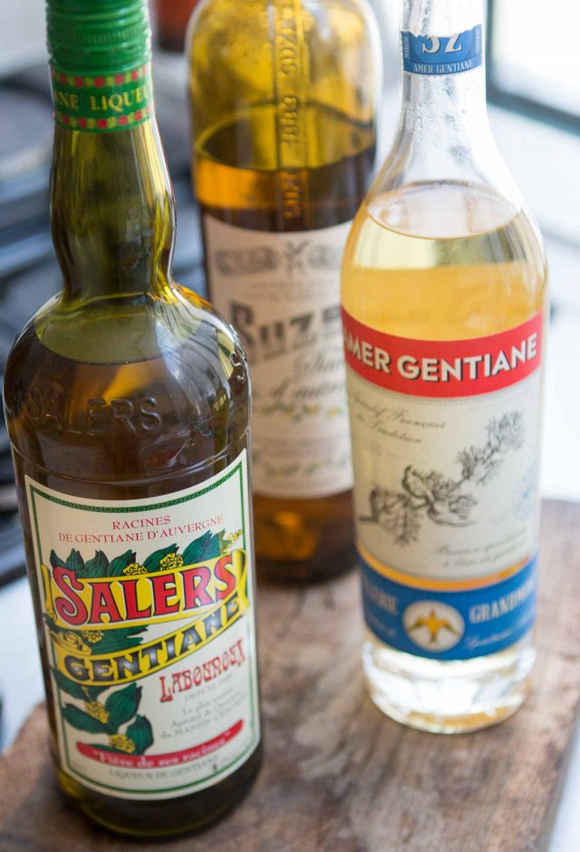 Gentian is a root unearthed in volcanic soil in France. Its bittersweet flavor is very popular in France, sold as liqueurs and apรฉritifs; Suze, Salers, and Avรจze are the most well-known. If youโre in France, Distillerie de Grandmont makes an excellent artisan gentian liqueur that I like very much, but isnโt widely available. (Google it to track a bottle down from online sellers.) Also in France is Ziane, a non-alcoholic gentian apรฉritif, and another one made by Couderc distillery, whose website I canโt figure out how to navigate. Both would work if youโd like to make this a mocktail.
