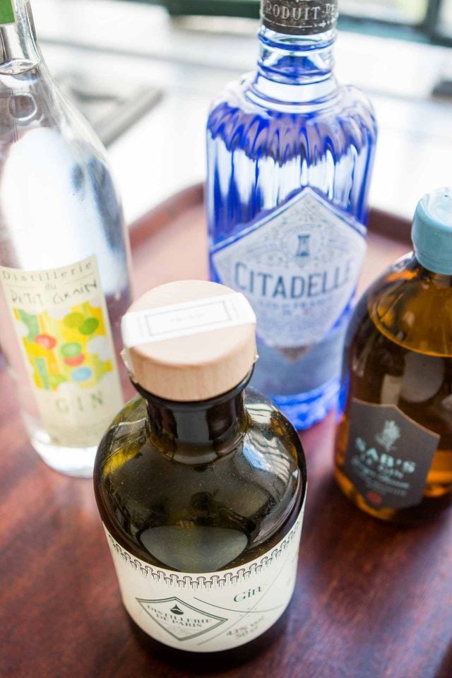Gin is used in a number of cocktails and drinks. Its light color and appealing juniper flavor complement everything from lime juice in a Rosemary Gimlet to a Martini made with pine buds (page 153 of Drinking French.) Some good-value brands are Fords, Citadelle, and Beefeater. France has recently come on strong in the gin game and French gins range from dry to fruity. There are now some interesting American brands too. For most cocktails, my preference leans toward clean-tasting gins that are not too heavy on the botanicals, although ones that do make a good Gin To (Gin and Tonic.)