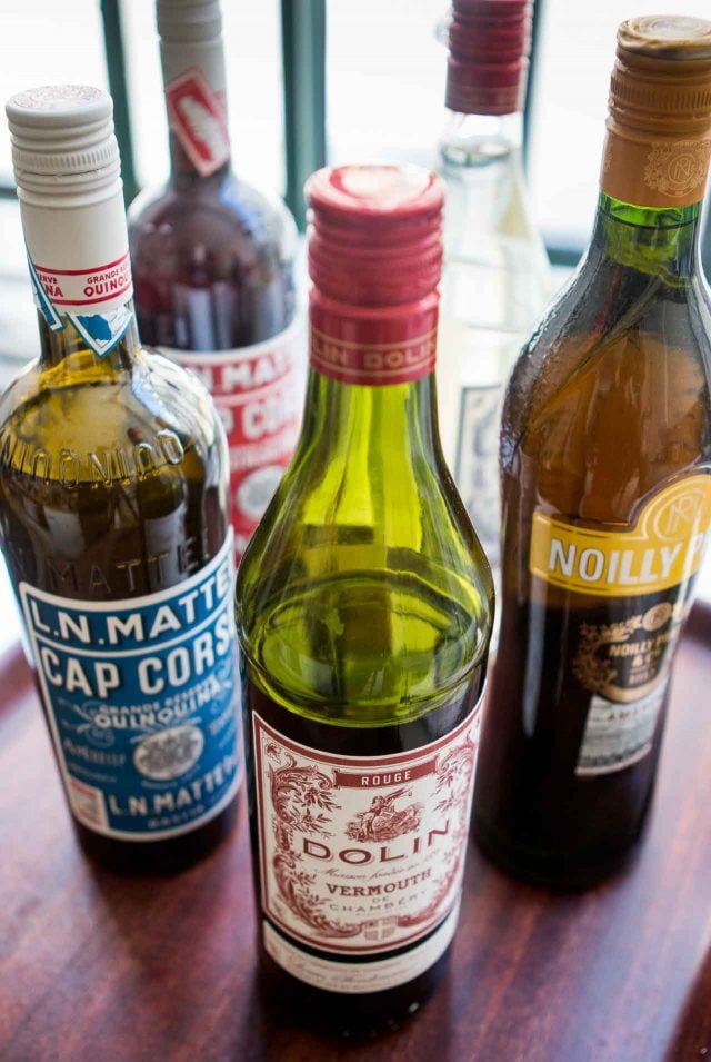 I recommend having a bottle of sweet (red) and/or dry vermouth on hand, depending on which kinds of drinks you like. (Blanc, or bianco vermouth in Italian, is not the same as dry vermouth.) The French are mostly known for their dry vermouths, more than their red, sweet ones. The main difference is that Italian red vermouths lean toward being more fruit-forward whereas French ones tend to be more herbaceous. Prominent French brands are Noilly Prat and Dolin. Note that Noilly Prat makes a special extra-dry vermouth which, as far as I know, is only available in the United States, and is my preference over their Original dry, which is the one sold in France. Noilly Prat is richer than Dolin, so some people prefer the latter for Martinis and other clear cocktails. Sweet vermouth is used in French Manhattans, Brooklyns, and Americanos.