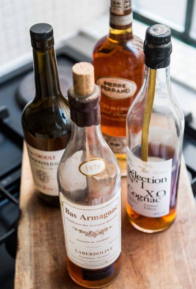 These brandies are distillations of fruit, when are aged in casks. There are many different styles and flavors of brandies depending on what fruits are distilled, and how they are aged. But youโd be hard-pressed to find something simply labeled โbrandyโ in France. Very broadly speaking, cognac tends to be the smoothest and Armagnac is more dynamic; both are distilled from grapes, but cognac gets distilled twice while Armagnac gets distilled once. Calvados, from Normandy, is distilled from apples and pears and those flavors figure prominently in its taste. Some of these can be expensive, but more so than other spirits, with cognac, calvados, and Armagnac, you get what you pay for.