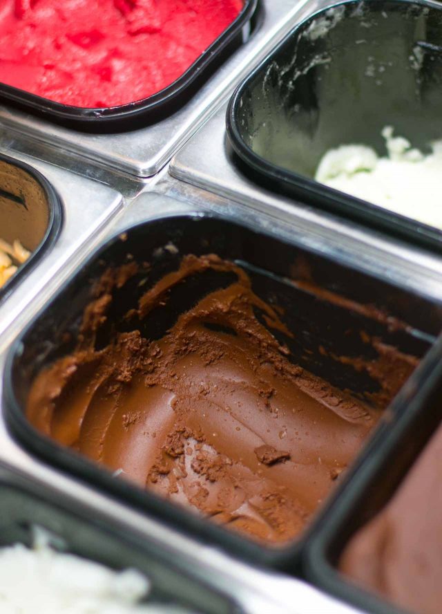Henri brings the French sensibility for not overdoing it to his frozen flavors, and his scoops hit the balance just right. The spices are present, but donโt knock you over. The fruit and berry flavors are right on the mark. Basil is used judiciously with lemon and vodka, and a touch of rose perfumesย his grapefruit sorbet, to counter the tartness.
