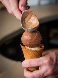 I was glad to finally meet Henri face-en-face, and we went outside his shop to eat our cones to enjoy the nice weather.ย In between talking, he took licks of his cone while I polished off mine. As he neared the middle of his cornet, he stopped, looked at it, then at me, and said, โHeyโฆthis is good!โ And Iโd had to agree.