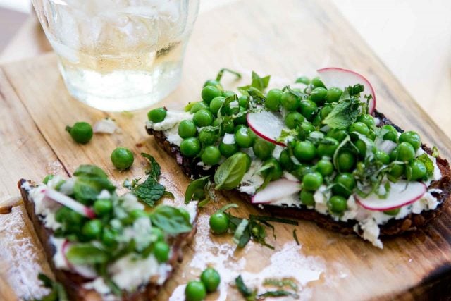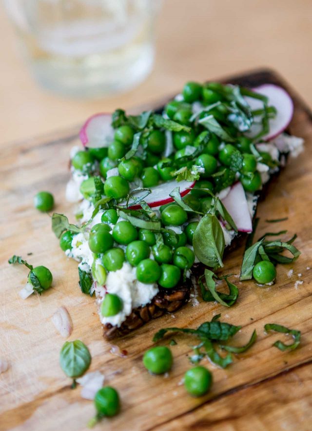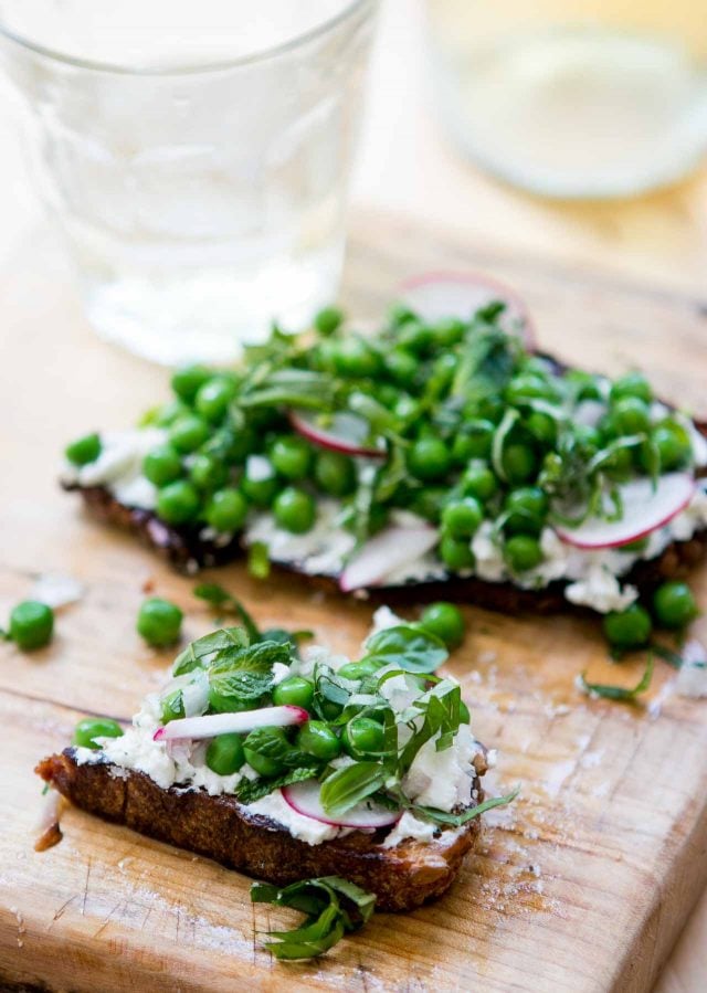 These tartines put fresh peas front and center. Thereโs expression, or theory, that says, โThe easiest solution is the best.โ Which goes along with something Iโve learned from French cuisine: You donโt need to do, or add, a whole bunch of stuff to food โ just let good ingredients shine. Both seem to apply here; shuck some peas, donโt do too much to them, and let them speak for themselves.