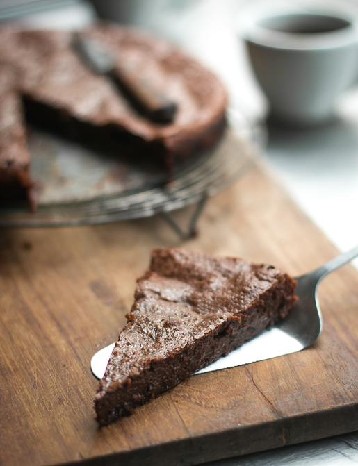 Now I can make them at home, where no one’s watching me, and I don’t need to feel guilty about not participating in the weeding. (Not that I did when I was there. But still…) I tinkered a bit with the recipe, and mine came out even richer and moister than I could have imagined, although I stuck with her idea of baking them in a round pan rather than a traditional square one.
