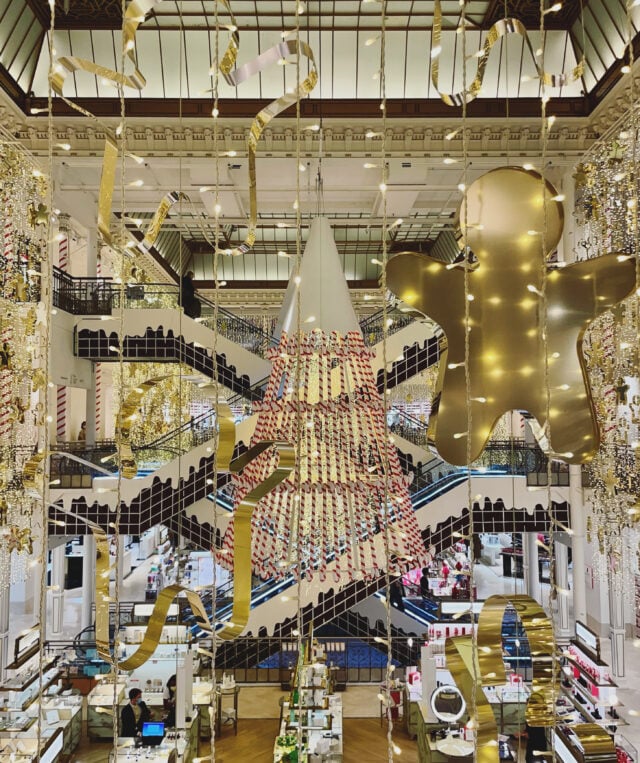 The Christmas lights that shine across Paris are just magnificent. From the widest boulevard to the tiniest cobbled street, the city makes a huge effort to decorate. Place Vendome, rue Saint Honorรฉ, Place Dauphine, Palais Royal and Boulevard Saint Germain are a few of my favorites, but nothing beats le Bon Marche. This year theyโve created a wonderland with a tree made from candy canes descending from their art deco ceiling. It really elevates running errands when you stroll past the twinkling lights on the way to the grocery store, hot chocolate in hand. Iโve teamed up with my Instagram-turned-real-life friend Landen Kerr to organize two special tours of our favorite Christmas lights, patisseries and places to pick up the best ornaments and one-of-a-kind gifts. If you would like to join us, information and booking details can be found here.