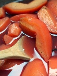 - When translucent and a paring knife inserted into the pears meets no resistance, remove from heat and let the pears cool in their liquid.
